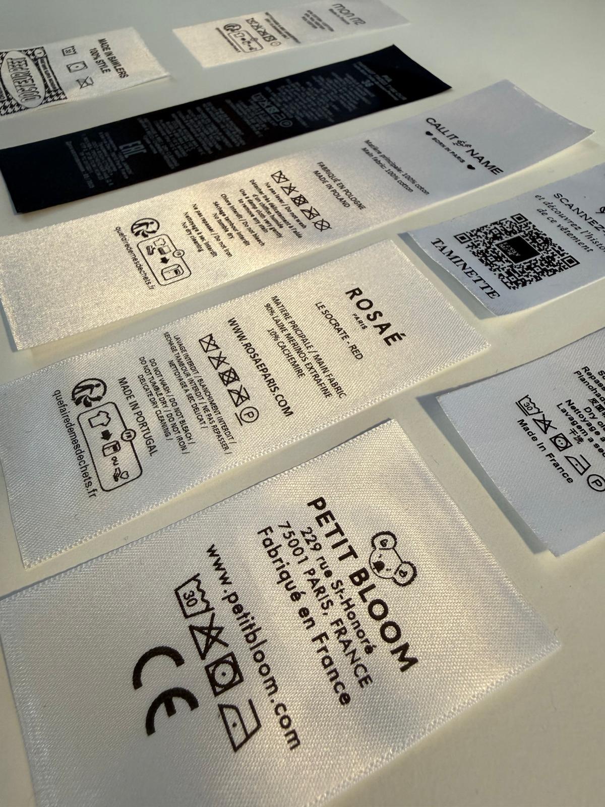 Fabriquées en France dans notre atelier, les étiquettes de composition textile garantissent la traçabilité de vos vêtements, de la matière première au produit final.